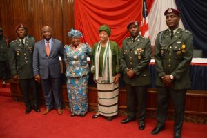 Monrovia, Liberia-Friday, December 9, 2016: President Ellen Johnson Sirleaf has commissioned three senior officers of the Armed Forces of Liberia (AFL), recognizing their exemplary roles in professionally serving and defending the country. She described their performance as satisfactory since taking over from Nigerian Major General Abdurrahman who served the nation as Chief of Staff … Continue reading President Sirleaf Commissions AFL Senior Officers